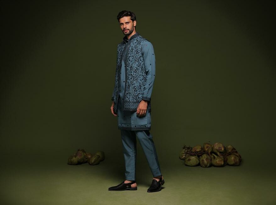 The brand has made a strong mark in the men’s ethnic wear category, offering meticulously crafted kurta pyjama sets and bundis, but its appeal extends beyond that. With their recent Naayab collection, Kalpraag showcased an expansive range of Patiala and Jodhpuri sets, distinguished by their intricate, hand-embroidered designs. Motifs inspired by India’s cultural tapestry—majestic elephants, lush jungle scenes from Sundarban, and the fine artistry of Kashmir—come together to create garments that are not just stylish but meaningful. “Each design tells a story,” Mayank reflects. “We are not just selling clothes; we are curating an experience, a piece of India’s heritage in every thread.”