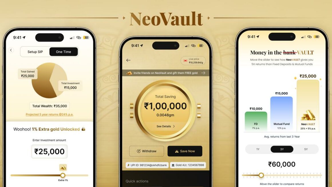 NeoVault allows users to invest, save, and grow their gold digitally while maintaining the flexibility of instant withdrawals. The account is powered by HDFC Bank and provides users with a personalised account number and UPI ID, enabling them to save money directly into gold through seamless digital transactions.